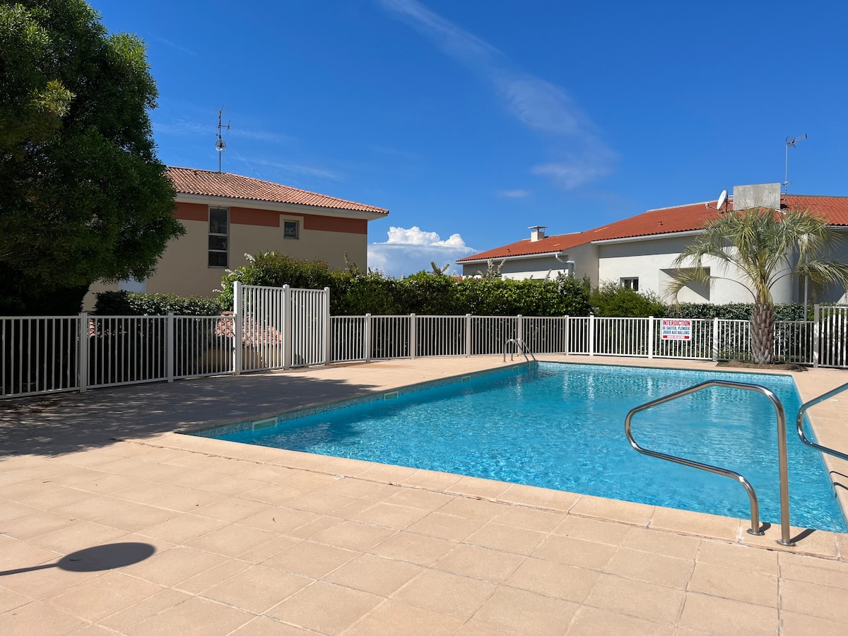 Lägenhet på 35 m2 5 minuter från stränderna. Beläget på 2 :a våningen med hiss med fri sikt. Boendet ligger i ett lugnt och säkert bostadsområde med övervakningskamera. Privat parkering. Rökfri lägenhet. Vardagsrum med bäddsoffa för 2 personer och bäddsoffa för 1 person. TV, wifi, luftkonditionering Utrustat kök (mikrovågsugn, brödrost, Senseo-kaffebryggare, spishäll, kylskåp med frys, diskmaskin, Italiensk dusch, separat toalett, 8 m2 terrass och balkong.
