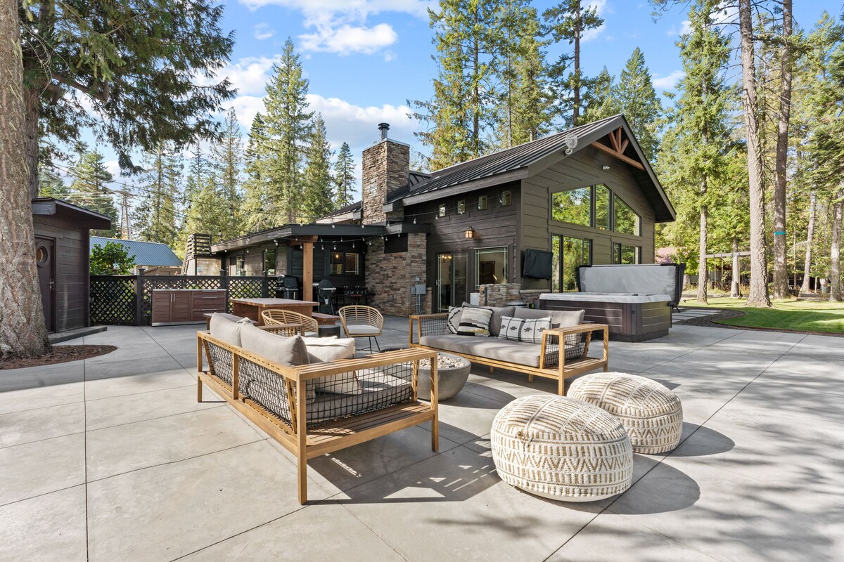 Modern lyx möter Priest Lake! Undangömt i skogen bakom Priest Lake Golf Course och ligger bara 2 minuter från sjön och både Hill's Resort och Millie's, är detta en perfekt plats för familjer eller en grupp vänner att njuta av Priest Lake! Detta boende med 3 sovrum/3 badrum har 2 primära sviter, WIFI, badtunna, grill, eldstad och en fantastisk utsikt över golfbanan. Vi har dig täckt på vintern med en automatisk generator, Smart TV, massor av brädspel och snöskospår utanför din bakdörr!
