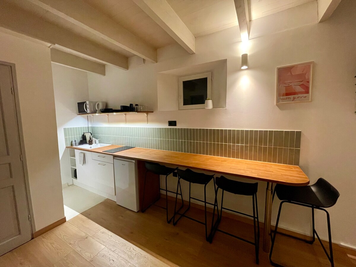 Trevlig 2:a på 37 m², mycket ljus och lugn, i centrum av Valence. Du hittar all komfort som behövs för din vistelse: - säker privat parkering - fullt utrustat kök (elspis/ugn/mikrovågsugn/köksfläkt/diskbänk) - tvättmaskin - Dolce Gusto kaffebryggare - separat kyl och frys - rengöringskit (dammsugare/mopp/tvättställ) - italiensk dusch - separat toalett Sänglinne och handdukar ingår.