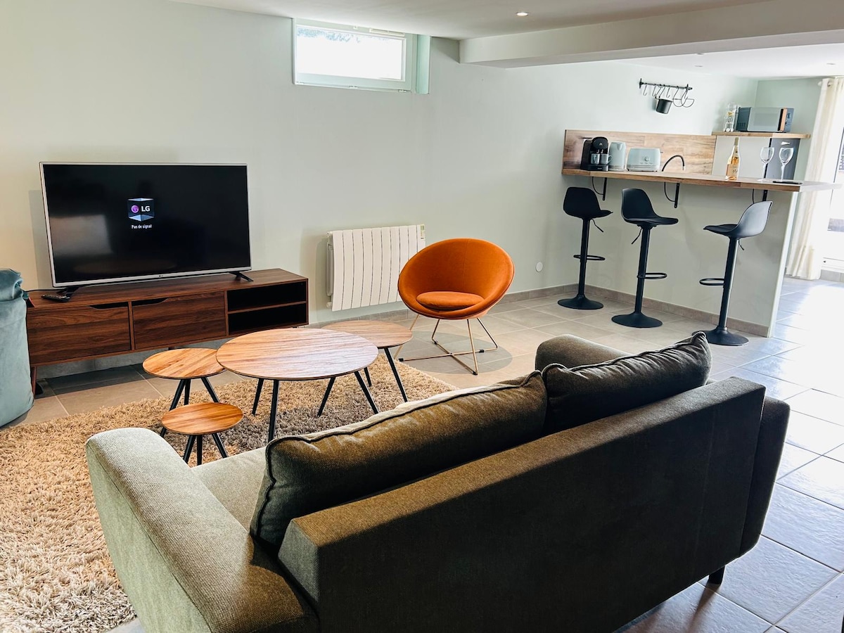 🌴 Tropisk flykt – Din exotiska paus i hjärtat av Bourgoin-Jallieu 🌴 Detta unika och uppslukande boende ligger i centrum, 2 steg från gågatan. Detta 63 m² stora hus har renoverats noggrant i ett djungelchict universum och har utformats för att få dig ur vardagen. Mitt bland växter och djur innehåller detta 2-våningsradhus alla bekvämligheter som behövs för att rymma upp till 4 personer. Boendet ligger 30 minuter från Lyon och 40 minuter från Grenoble.