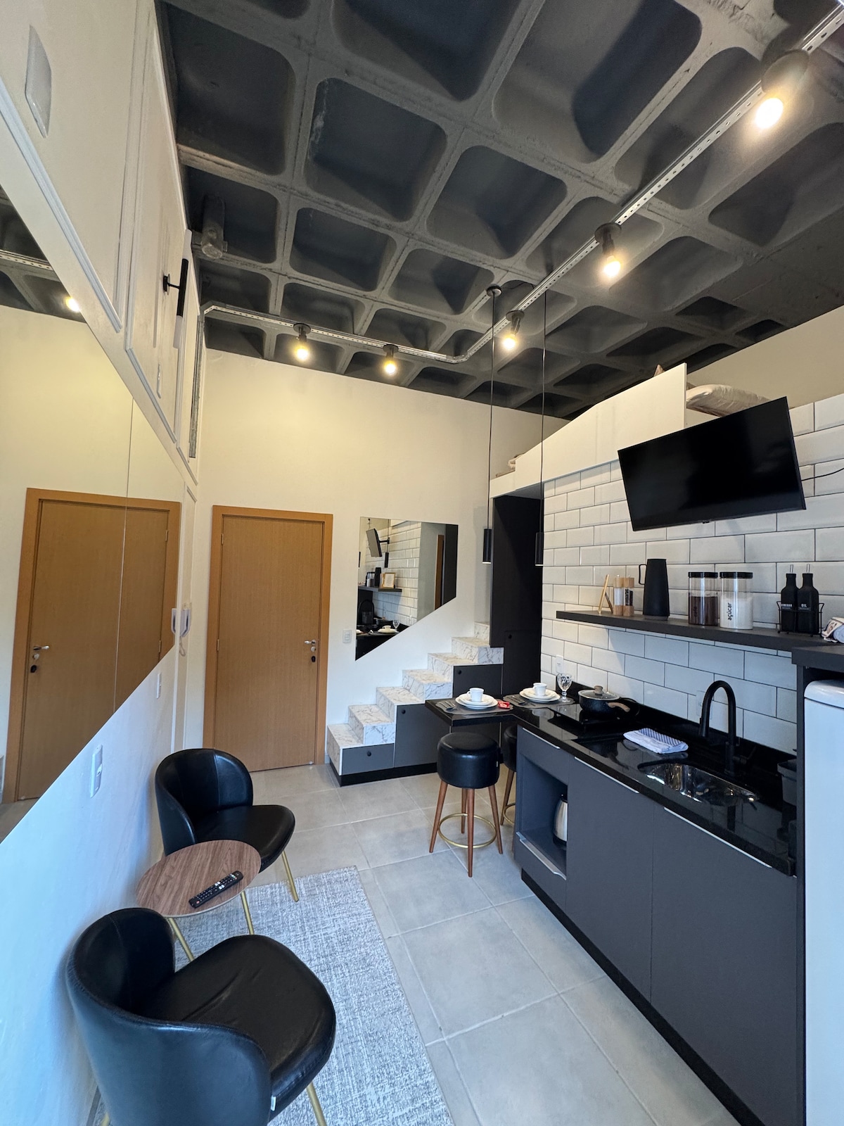 Monterad studio för att välkomna gäster med komfort och funktionalitet. Nära centrum av norra Armço. Vi har en minibar, minikök med elektrisk spis och mikrovågsugn för små måltider, luftkonditionering, Smart TV och en dubbelsäng som rymmer högst 2 personer. Säng och badlakan av utmärkt kvalitet.