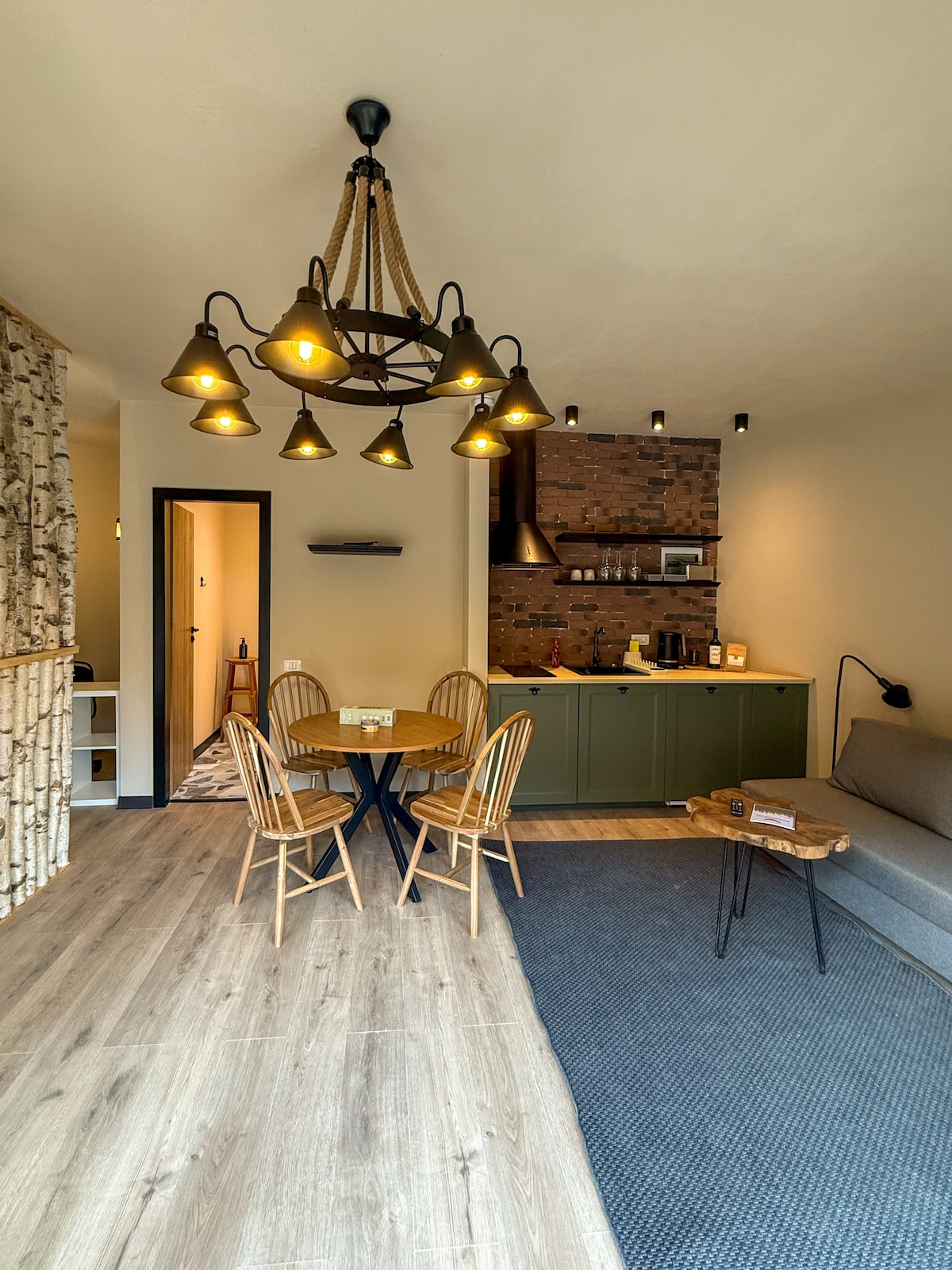 Ett charmigt hus i Hobbit-stil inbäddat vid en lugn sjö, perfekt för en sagolik flykt. Den är tillverkad av naturmaterial och smälter harmoniskt med omgivningen. Huset har en bekväm dubbelsäng, ett pentry (*inte för matlagning) och en egen terrass med utsikt över sjön, som erbjuder lugn och hisnande utsikt. En magisk tillflyktsort för naturälskare. Denna enhet är en del av Atelier Recreation Village tillsammans med The little house med en verkstad och andra 3 charmiga familjechalets.