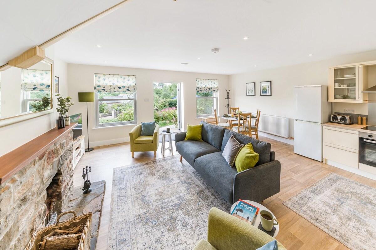 Rymlig, fristående, nyrenoverad gårdsbyggnad i avskild by med fantastisk utsikt över flodmynningen och bortom. Separat trädgård och grillplats, fullt utrustat kök, modernt duschrum, stort vardagsrum med soffor och smart-TV, sovrum med dubbelsäng, king size-säng, TV och rustika balkar. Koppla av i trädgården, utforska det lokala området. Gå, spring, cykla, golfa, simma, surfa. Fantastiska stränder, sanddyner, hedar, böljande kullar, karg kustlinje, en kort bilresa bort. En mile från Tarka Trail cykelväg.