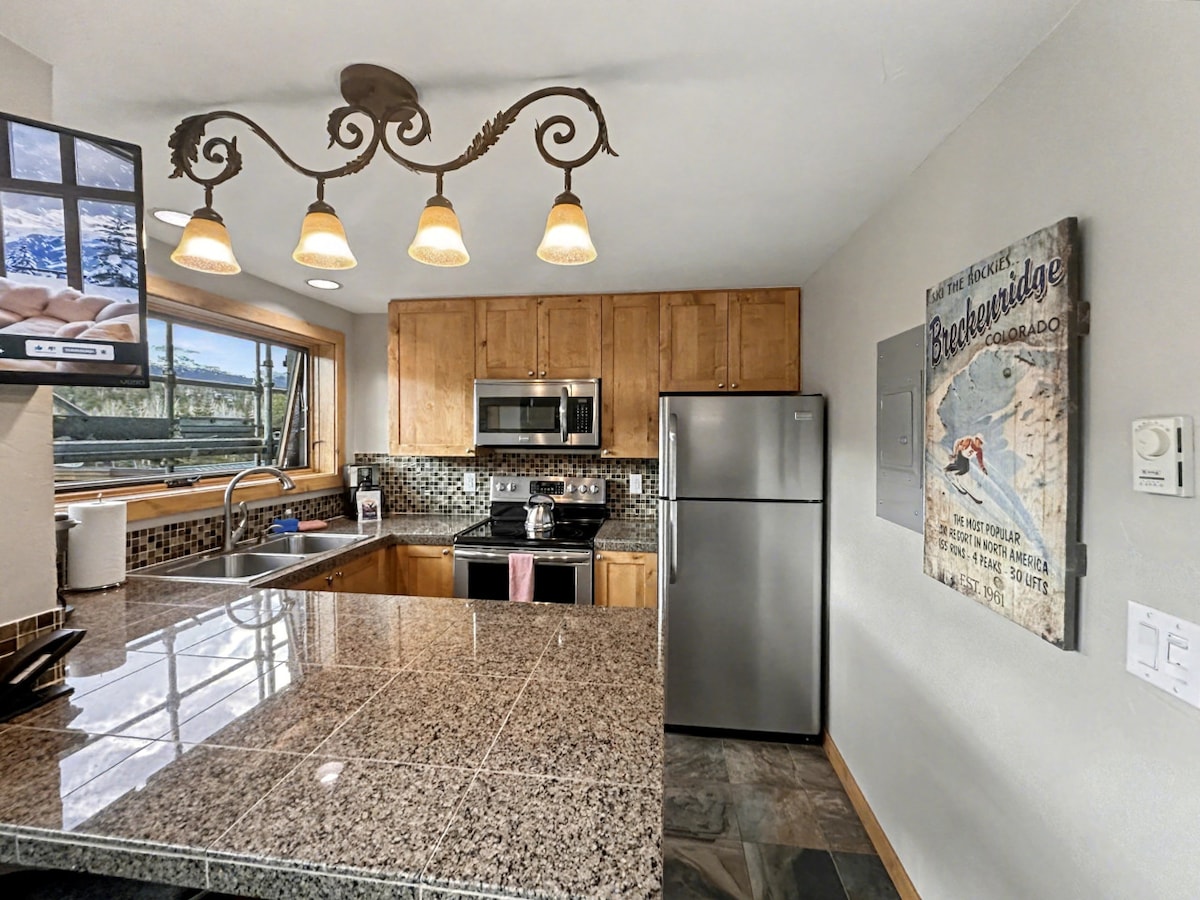 🎿 Ski-in/Ski-out 3:e våningen Queen Studio. Oslagbart läge vid basen av Peak 9 med direkt tillgång till Quicksilver Chairlift, skidskola och precis utanför Main St. Fullt utrustat kök, smart tv, höghastighets wi-fi och AC på sommaren. Betald parkering finns eller lämna bilen och ta skytteln för stressfri resa. Förvaringsskåp tillgängliga för tidiga/sena gäster. Sovplats för 4: ny queensize-säng och queensize-sovsoffa. Vi skickar en bra planeringsguide!