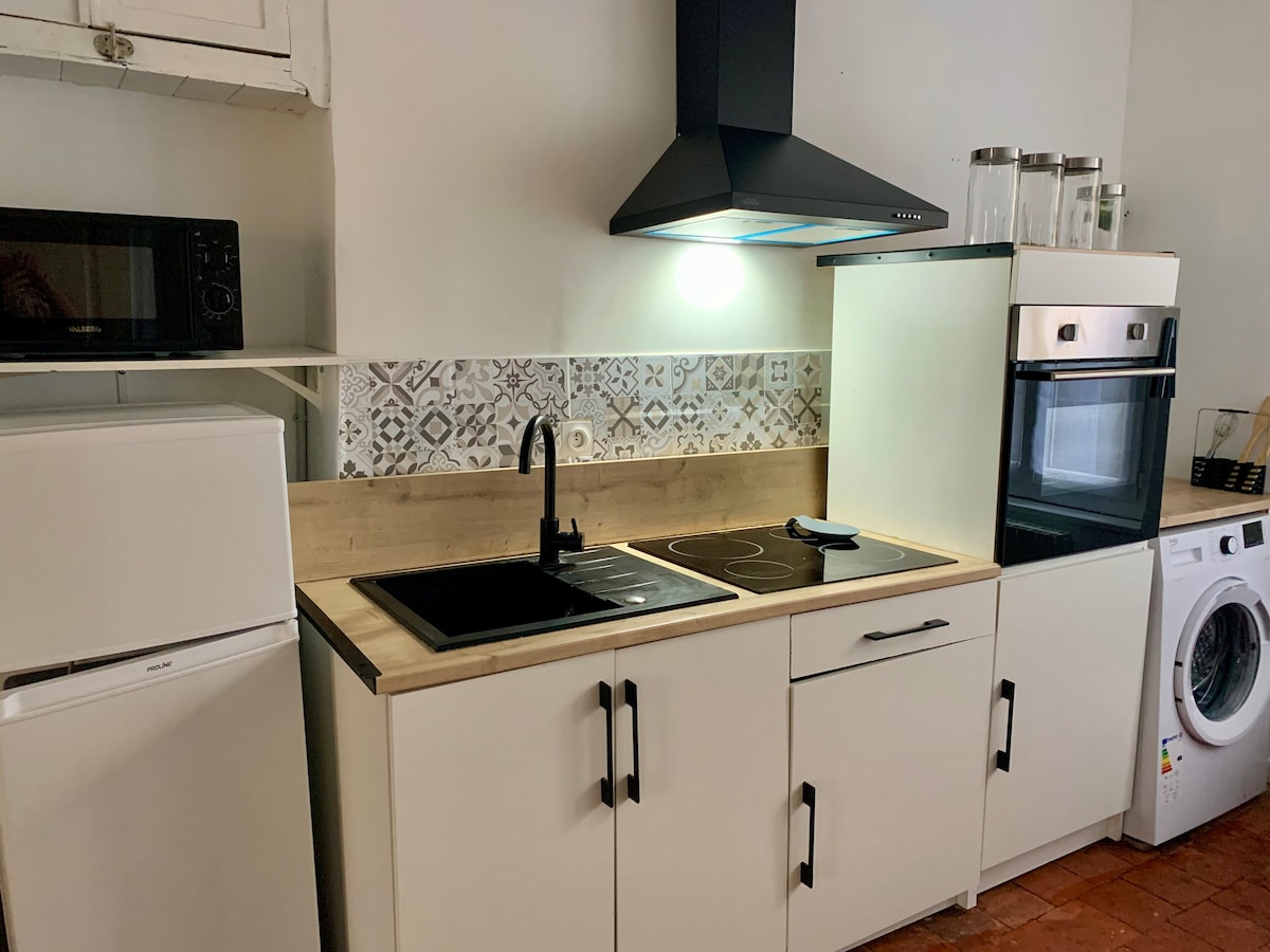 Koppla av i detta lugna och eleganta utrymme som totalrenoverades 2025 med kvalitetsmaterial. Gästerna kan njuta av ett spaområde med utsikt över trädgården våra två sovrum är utrustade med dubbelsäng för maximal komfort vardagsrum, matrum, fullt utrustat kök Te, kaffe, sött, salt, peppar... tillgängligt. Privat bakgård för motorcyklar och cyklar (stängd tomt), breddåtkomst 1 m. laddstation för elfordon 200 m bort.