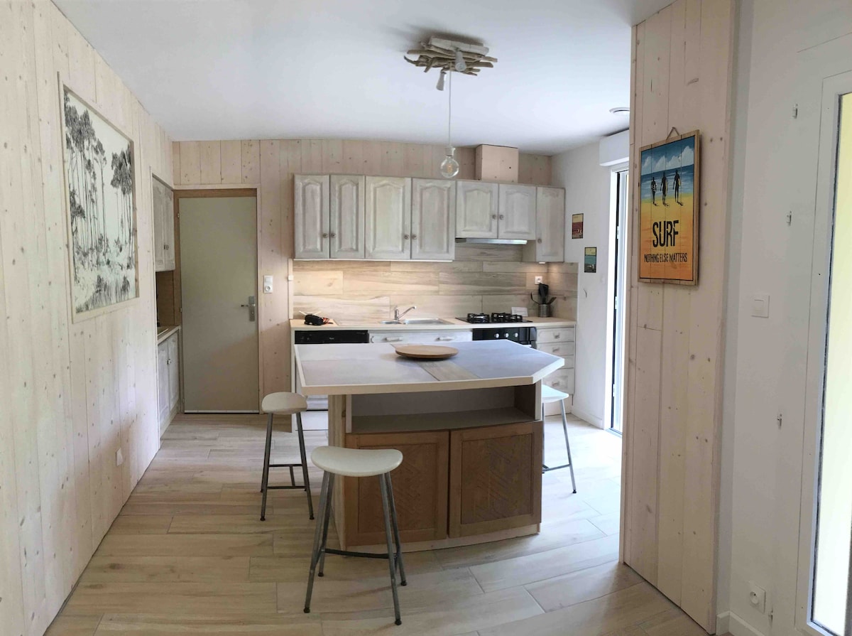 Min villa erbjuds dig med en raffinerad inredning +komfort garanterad Dess läge är exceptionellt☀️🏖️! vänd mot sanddynerna. Du kommer att korsa sanddynerna och du är 50 meter från stranden😜. Den här är den största och vackraste 😍 i Bretignolles. Du kommer att ha allt utrymme utan att vara ovanpå varandra... och för älskare eller 🏄 bekräftade surfare har du platsen framför! Perfekt för en sommar- och vintersemester genom att koppla av med familj , vänner, surfare... önskelista ❤️ garanterad!