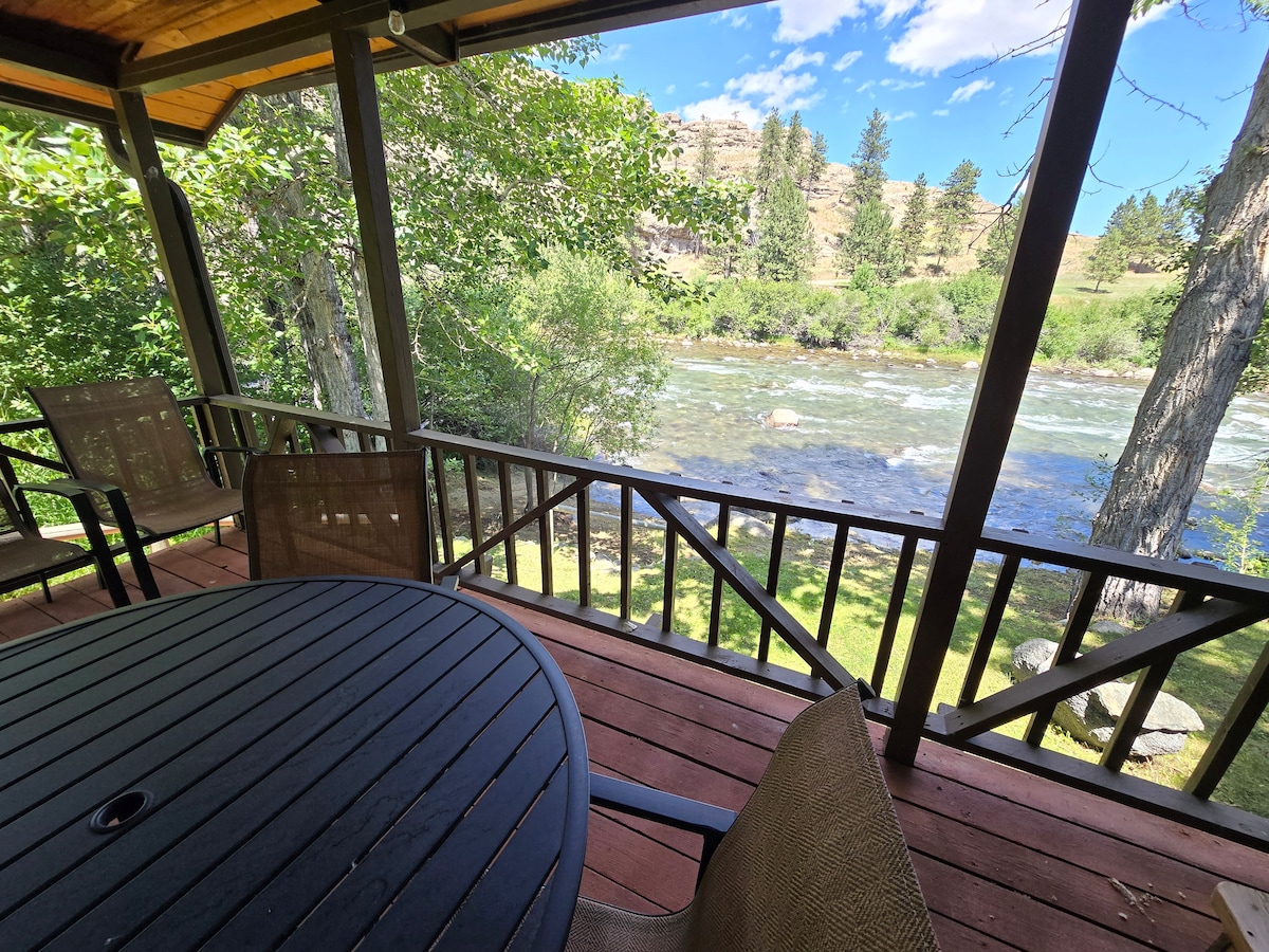 The Cabin is located on the west end of our family owned and operated cattle ranch. It has a full kitchen with everything needed to cook meals, a full bathroom, master bedroom with a queen size bed, small open loft with a pillow top double bed and 2 XL twin mattresses. The Yellowstone River is less then 100 ft from the front porch! Enjoy morning coffee watching the sun rise on the Crazy mountains, and in the evening sit on the front porch and relax & enjoy the beautiful sunset behind the mtns.