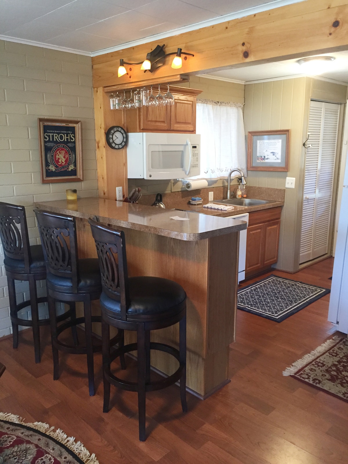 Unik enrumsstuga på stranden av Huronfloden. En halv mil promenad till den fotgängarvänliga byn Milford, känd för sitt utbud av butiker, restauranger, uteserveringar, konserter och festivaler. Perfekt bungalow för singel, par eller liten familj. Vardagsrummet har en bäddsoffa. Litet hem med många unika funktioner. Eldgrop vid flodkanten för avkoppling eller rostning av marshmallows, och en gasolgrill på uteplatsen. Två sit-in kajaker tillgängliga 15 maj–15 okt.