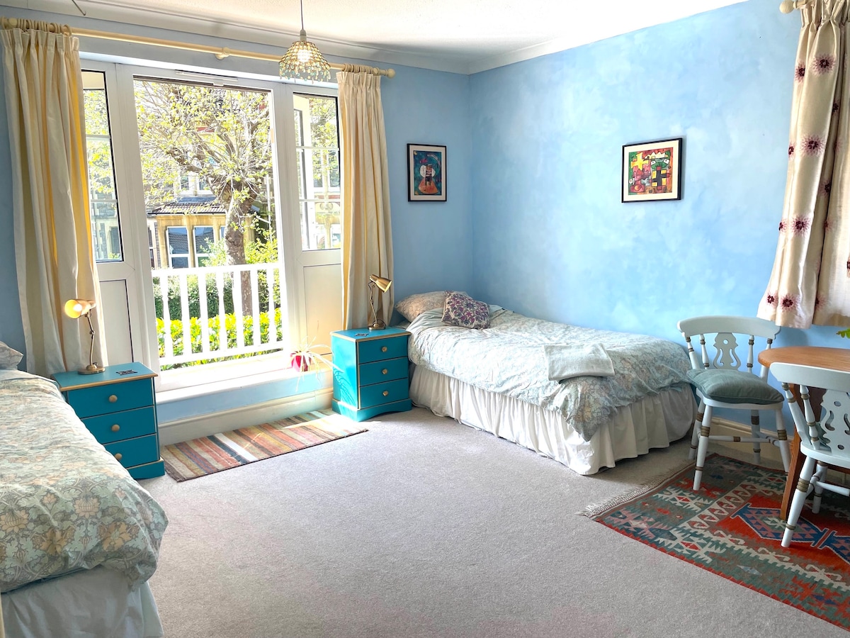Ett relativt stort dubbelrum i annexet till vårt familjehem, precis utanför den berömda Gloucester Road. En härlig, stor trädgård strax utanför fönstret och egen ingång. Rummet ligger på baksidan av huset och gästerna berättar regelbundet hur underbart tyst det är. Utmärkta transportförbindelser och nära till stadens centrum, det finns även ett fällbart bord att arbeta eller äta på eller helt enkelt fälla iväg.