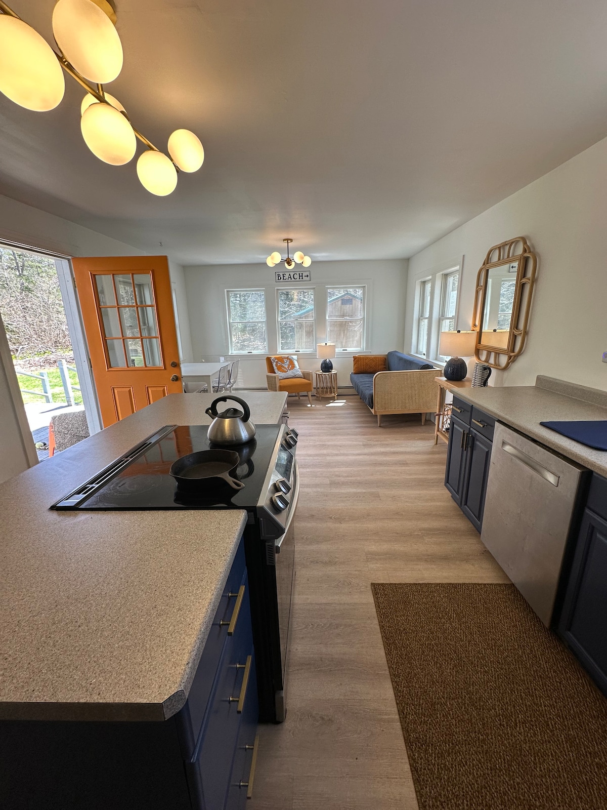 Denna moderna, handgjorda stuga, som presenteras i VOGUE och Maine Home + Design, erbjuder lugn utsikt över Atlanten, 150 meter kustlinje och en privat brygga, perfekt för morgonkaffe, att sjösätta en kajak eller titta på sälar, sjöfåglar och passerande båtar. Den ligger bland höga tallar och blandar nordiska och japanska influenser i ett utrymme som är lugnt och komponerat. Interiörer av trä, sten, kalkgips och betong bildar en grundad, tyst uttrycksfull och hållbart byggd tillflyktsort. 1 timme från Portland, men en värld isär.