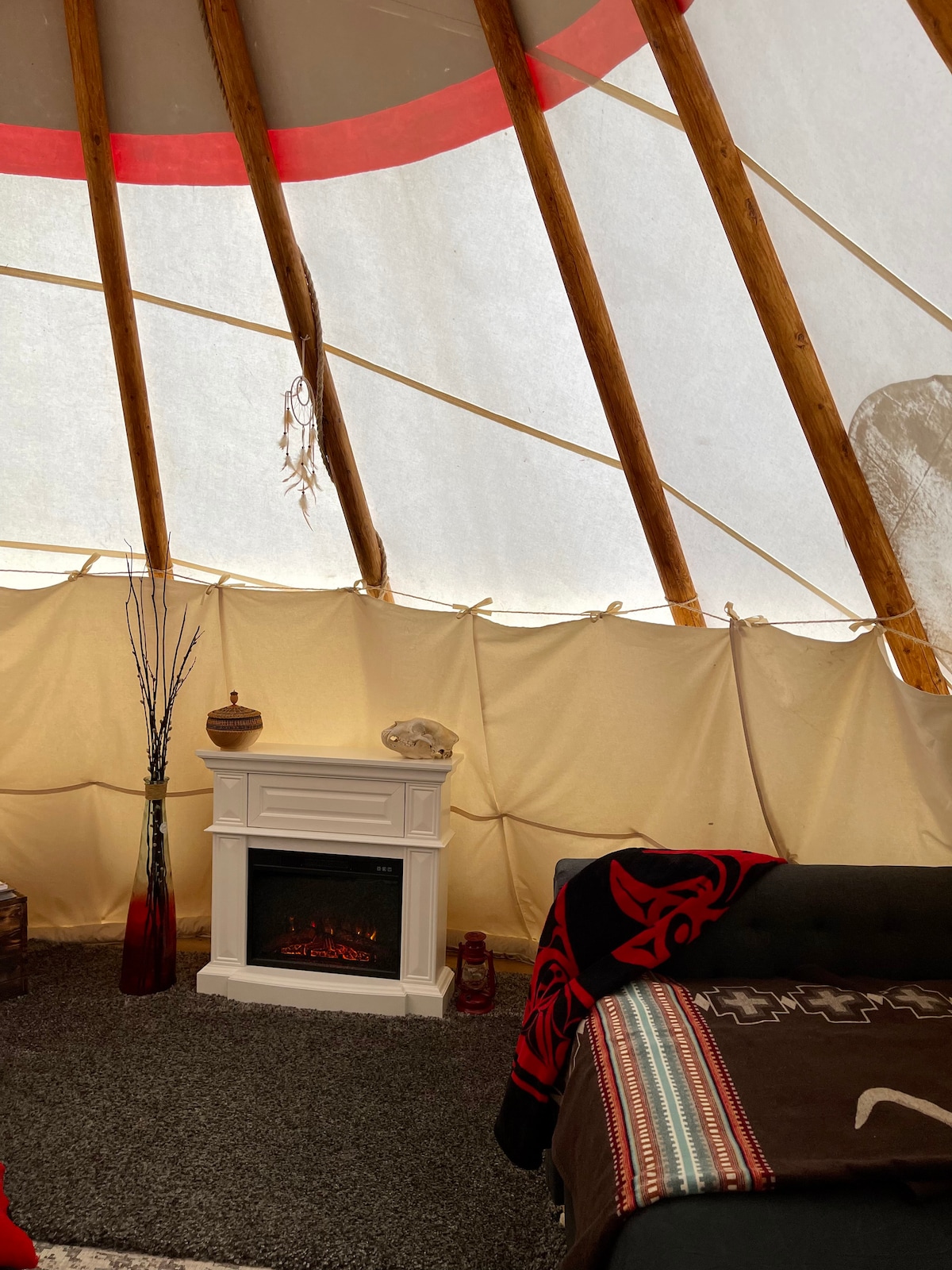 Glamping luxury TiPi. Comfortable queen bed with blankets and fur, rustic furniture. Our place in nestled on a First Nation, rich in History and Culture. We invite you to come and be our Guest. *Glamping TiPi #2 & #3 also available You won’t want to leave this charming place. Perfect for a couple's getaway.
