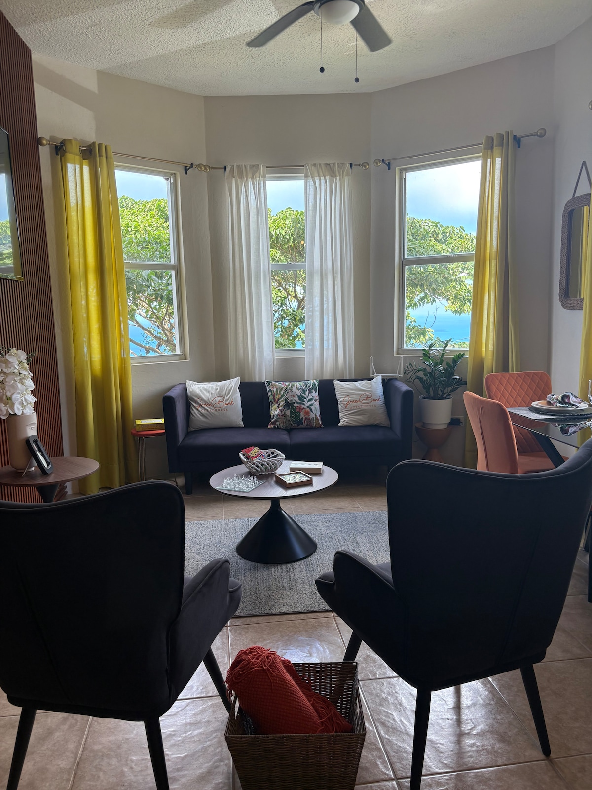 Bara en kort promenad till stranden och livliga lokala restauranger, erbjuder denna mysiga och moderna tillflyktsort fantastisk utsikt över bukten och oförglömliga solnedgångar. Lägenheten är utrustad med moderna bekvämligheter, inklusive två platt-TV, tvättmaskin/torktumlare och ett fullt utrustat kök. Perfekt för par, familjer eller vänner som söker komfort och bekvämlighet i en vacker, tropisk miljö. Din ö-resa väntar! Hyrbilar tillgängliga för ytterligare 70-80 dollar per dag.
