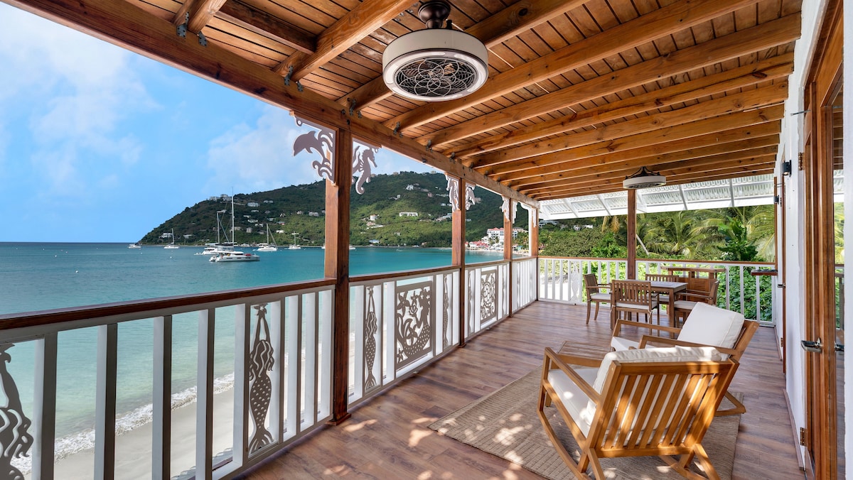 3 minuters bilresa från Nanny Cay Marina, detta boende ligger på 350' med den mest fantastiska 180 graders utsikt över den berömda Sir Francis Drake Channel (med inte mindre än 13 öar att se ut över!) Vårt hem är en mycket öppen, luftig design med 70' täckt däck och en ljus och färgstark "kustnära" inredning och atmosfär genomgående.