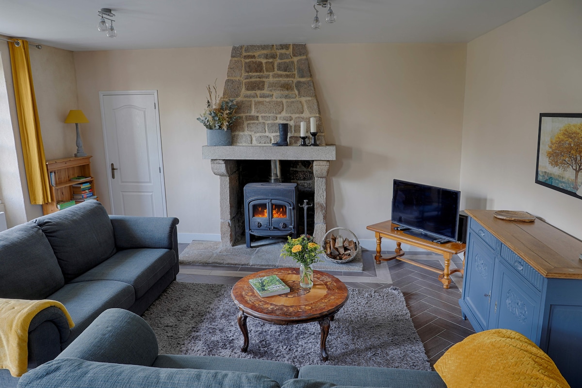 Vår moderna jurt ligger inbäddad i en fruktträdgård, 2 km från havet. Med en yta på 40 m2, dess stora takfönster och buktfönster gör det till ett mycket ljust boende. Den är mycket välisolerad, med en vedspis, för mysiga kvällar vid elden året runt. Sängkläderna byttes i mars 2024 och är extremt mysiga.