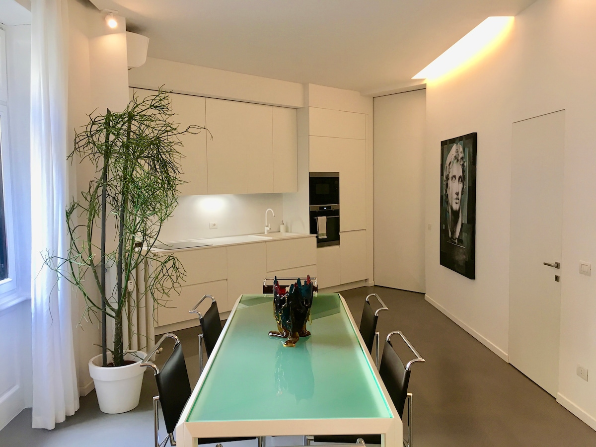 Lyxig lägenhet med designmöbler i centrala Milano, mellan Piazza della Scala och Brera-distriktet, på andra våningen i en elegant byggnad. Man kommer in i ett stort vardagsrum som består av en konversationsdel, matplats och fullt utrustat öppet kök, tre sovrum, två fint inredda badrum med dusch, tvättstuga med tvättmaskin och torktumlare. TV och Wi-Fi finns tillgängligt gratis i hela huset. Exponeringen är på en vacker innergård.