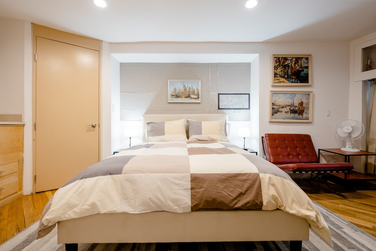 Inbäddad i en lugn svart bambulund, smält in i BASTUN✨ och njut av din egen avskilda urbana oas. Promenera genom historiska trädkantade Brownstone-områden i BedStuy, Clinton Hill, Ft Greene + Prospect Heights där du kommer att upptäcka trendiga kaféer, barer, nattklubbar, skräddarsydda butiker, museer, biografer, dans, global musik + mat och Michelin-guidens favoriter. Handla på Farmers Markets och förbered en måltid med lokalt tillverkade hantverksartiklar i det stora Chef's Kitchen.