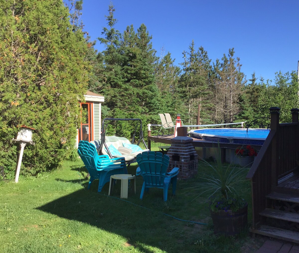 Perfekt centraliserad för alla dina PEI-ventyr. Tillbringa din tid i den mysiga loftet med att läsa, öva din golfsving, koppla av på verandan eller prata vid eldstaden. Detta 2 sovrum rymmer 6, med 2 extra enkelsängar på loftet. Självincheckning tillgänglig. Wifi, fullt utrustat kök, luftkonditionering, värme, tvättmaskin/torktumlare. Tillgänglig alla årstider. Nära till flera lokala sevärdheter och golfbanor. I juli/augusti är kortaste tillåtna vistelse sju nätter.