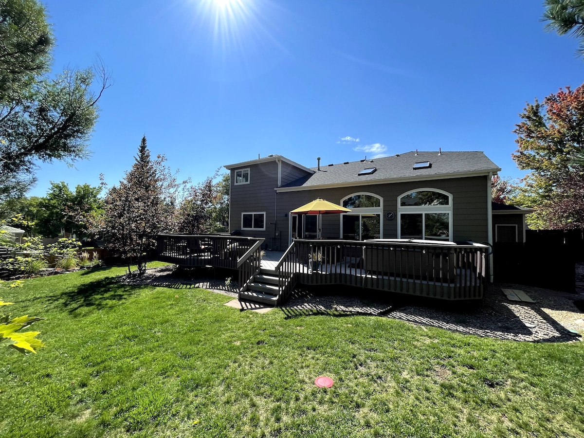Bo i en inbjudande öppen planlösning med privata enkel-, queen- och kingsize-sovrum! Boendet har ett fullt utrustat kök, böcker, en stor bakgård och en eldstad att njuta av med vänner och familj. Du kommer att vara 15 minuter från Boulder, 20 minuter från Denver och 1 timme från Eldora skidområde! Varje rum har också en TV med Amazon-brandpinnar. Det är ett husdjursvänligt boende, men jag har HEPA-luftfilter på din begäran. Jag odlar en trädgård från maj till september! Broomfield licens #2022-10
