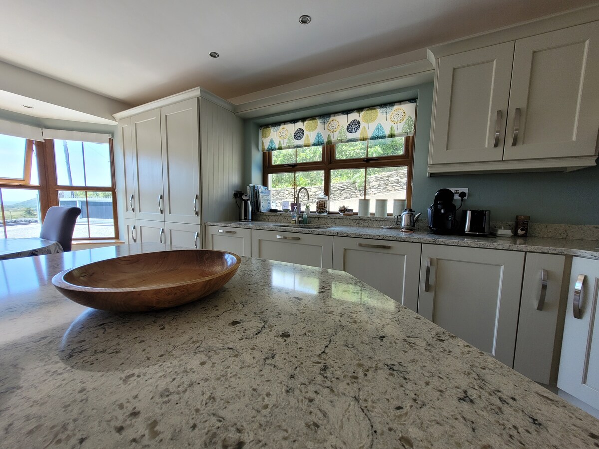 Traditionellt möter modernt i denna helrenoverade Farm Cottage som ligger på en fungerande liten gård. Ett rymligt sovrum på vindsvåningen med en mysig läshörna har utsikt över fält och djur, medan dramatisk utsikt över berg och dalar fyller fönstren med ljus. Byggd med lokalt virke och sten, och färdig med anpassade skåp och hantverksmöbler, är det en unik tillflyktsort – perfekt efter vandring, cykling, gårdsliv, meditation eller nätter av livlig traditionell musik.