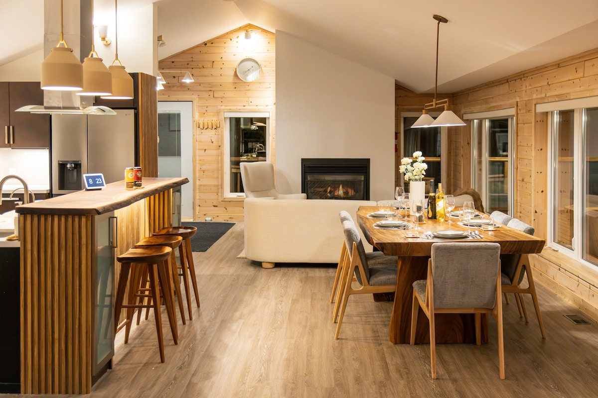 Välkommen till Cedarwood, en oas för välbefinnande. Dra dig tillbaka till en fristad med 3 sovrum och 3 badrum designad av Greg Williamson på 2 privata tunnland, några minuter från Tobermory. Denna arkitektoniska pärla har en bubbelpool, bastu och lugn utsikt, inramad av majestätiska cederträd. Njut av moderna bekvämligheter: höghastighetsinternet, Tesla-laddare och miljövänlig solenergi. Upplev välbefinnande med vår cedarbastu, expansiva däck och den dubbelsidiga vedeldade eldstaden. Perfekt för kräsna resenärer som söker lyx och avskildhet.