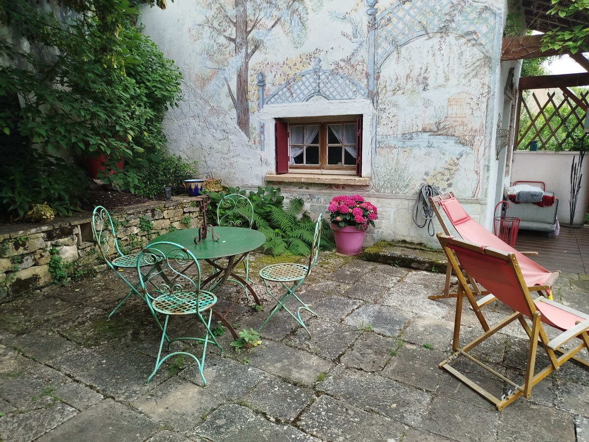 Litet hus 30 m2, fullt utrustat, med privat trädgård och tillgång till pool under säsong. Säker parkering på begäran. 10 minuter från Bourges med bil och 5 minuter till fots: - PLAIMPIED kloster - den gröna vägen som går till Bourges, längs med Berry-kanalen. Trevlig promenad för alla, inklusive våra fyrbenta vänner - en lekplats för barn, i en vacker park - en närbutik, ett bageri, en slaktare och en trevlig restaurang. Barnutrustning. Arbetsyta/wifi med hög hastighet.