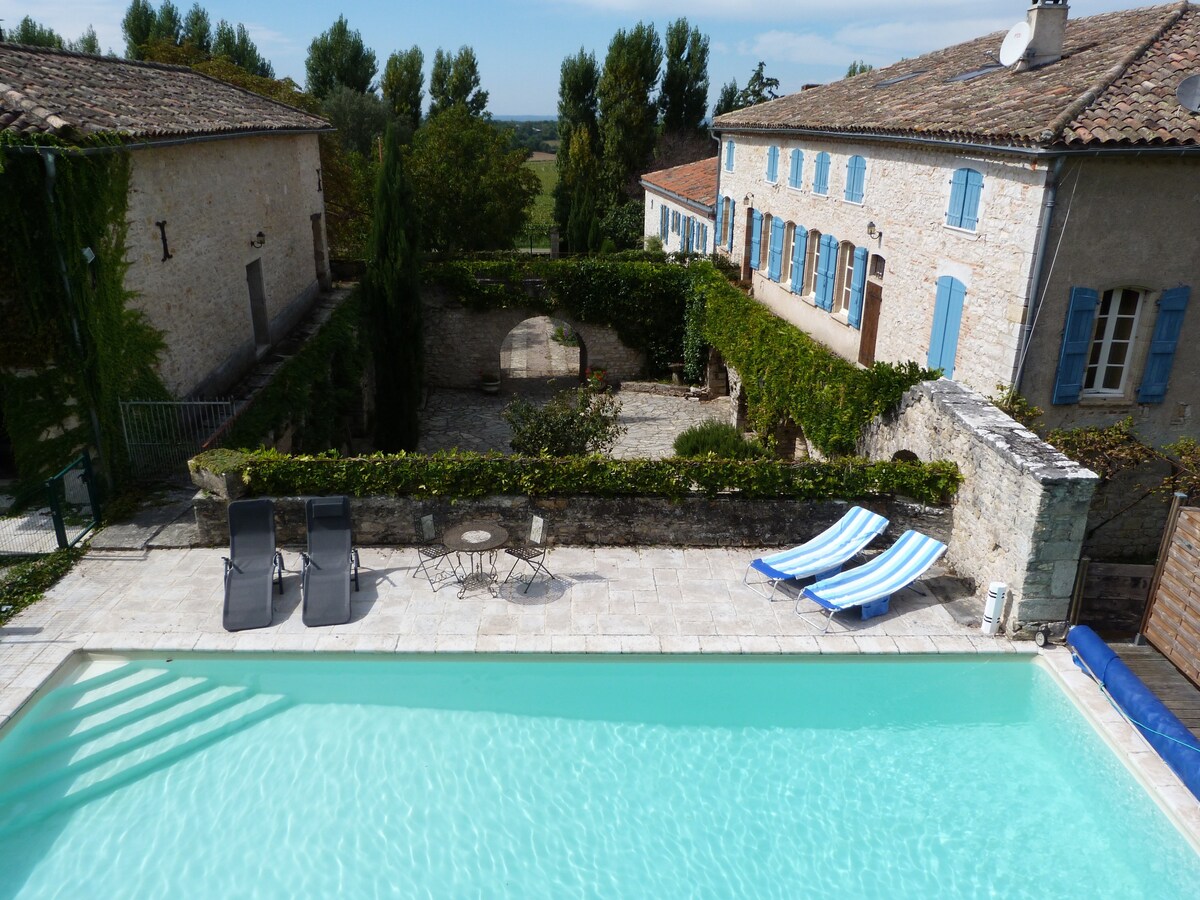 Charmigt, kulturminnesmärkt hus vid vattnet, nära medeltidsbyn Bruniquel. Du kommer att njuta av dess stora trädgård utan att se över grannarna, skuggan av dess ekar och det lokala djurlivet (fåglar, ekorrar...). Naturens lugn kommer att ladda dina batterier. Dess park, dess privata strand med direkt tillgång till floden erbjuder många aktiviteter: bad (progressiv vattennivå), fiske, kanotpaddling (till ditt förfogande). Närliggande vandringsleder kommer att erbjuda dig fina promenader.