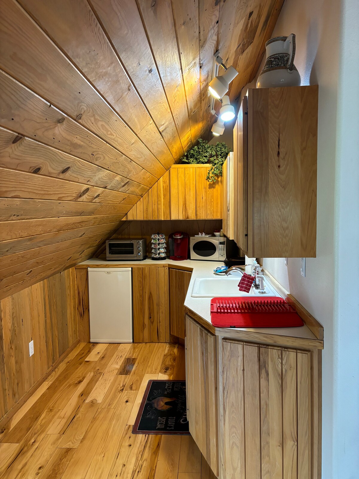 The Bunkhouse ligger undangömt på den fridfulla landsbygden och erbjuder den perfekta tillflykten – oavsett om du är här för en helg av vinprovning, en romantisk tillflyktsort eller en lugn plats att arbeta medan du njuter av moderna bekvämligheter. Detta mysiga BnB har ett eget sovrum med en lyxig king-size-säng, plus en queen Murphy-säng i det stora rummet — perfekt för par, små familjer eller ensamresenärer som söker både komfort och bekvämlighet.