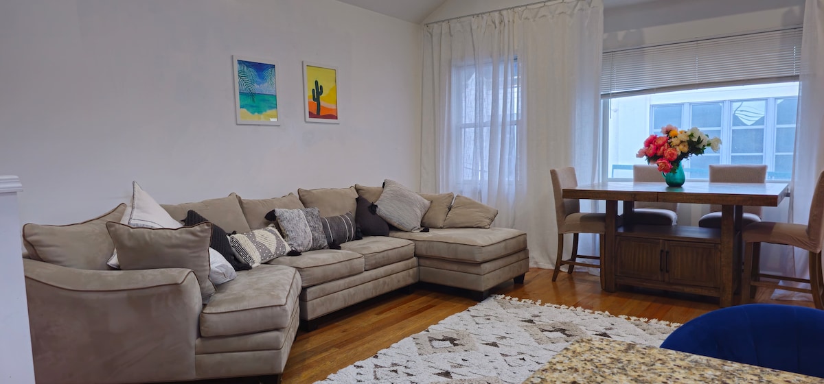 Perfekt för gäster som söker en lugn vinteråterställning, fjärrarbete eller ett bekvämt boende medan de byter mellan boenden. Kliv in i lugn och komfort på denna fridfulla tillflyktsort i Japandi-stil bara 30 minuter från Manhattan. Detta fridfulla boende är utformat med en blandning av minimalism och värme och ligger mitt i hjärtat av Bayonne. Njut av snabb tillgång till kollektivtrafik, lokala restauranger och Hudson-stranden, samtidigt som du kommer hem till en ren, genomtänkt kurerad atmosfär.