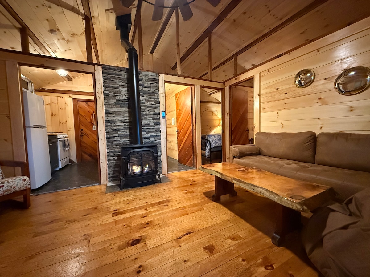 Vill du verkligen komma bort och inte ha några grannar i sikte? Jag vill välkomna dig till vår avskilda stuga i skogen. Stugan har allt du behöver för en vilsam och lyxig vistelse nära Bethel och det vackra omgivande området. Vi ligger tvärs över gatan från Round Pond och har tillgång till några av Maines bästa orörda fiskeplatser. Vandring finns i överflöd i de omgivande bergen tillsammans med den vackra staden Bethel i närheten. Mt. Abram ligger bara 5 minuters bilresa bort.