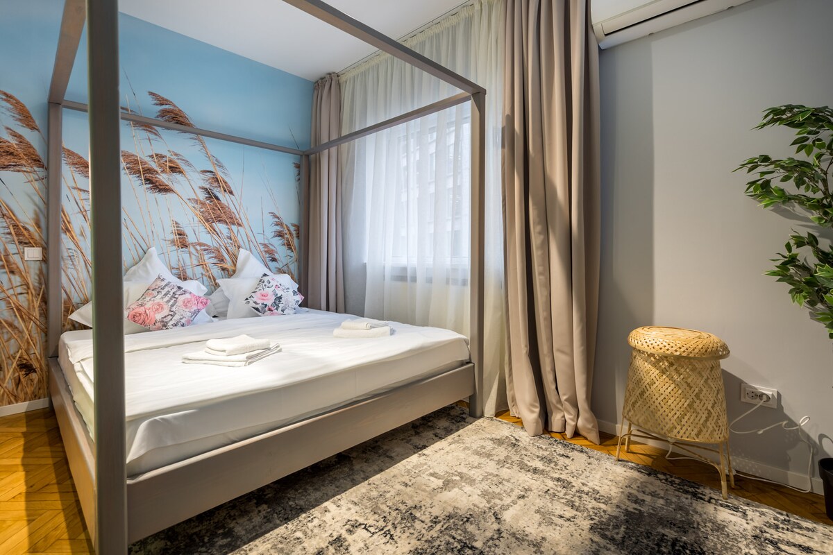 Welcome to your urban oasis in the heart of Bucharest! Discover the perfect blend of comfort, convenience, and modern living in our spacious Apart-hotel. With a focus on luxury and relaxation, this apartment promises an unforgettable stay for up to 4 guests. Immerse yourself in the vibrant energy of Bucharest from your base, being super close to the Historical Center. Enjoy easy access to local attractions, dining, shopping, and entertainment and create lasting memories in this dynamic city.