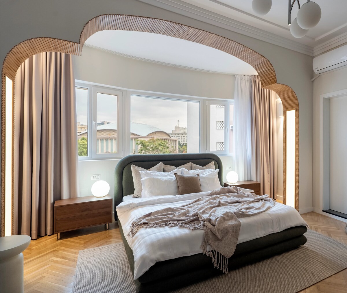 Njut av fantastisk stadsutsikt från denna helt nya lägenhet med 3 sovrum och 2,5 badrum, med panorama över Palatset av parlamentet och Folkets frälsningskatedral från två av rummen. Denna eleganta lägenhet är helt renoverad och möblerad och blandar modern komfort med eleganta detaljer, vilket gör den perfekt för både affärs- och fritidsvistelser. Denna lägenhet har anpassade möbler, genomtänkta bekvämligheter och en rymlig layout och erbjuder en sofistikerad tillflyktsort i hjärtat av Bukarest.