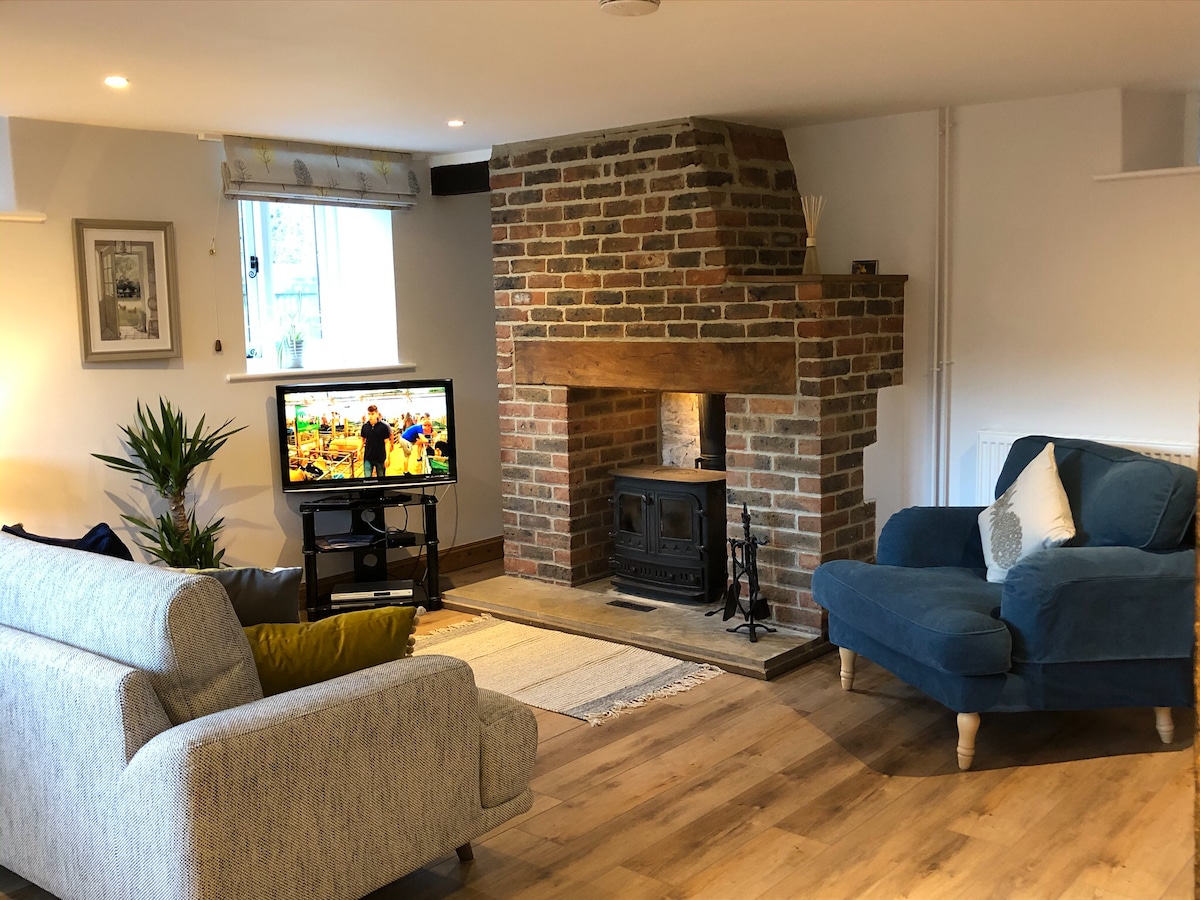 Shepherd's cottage är en härligt mysig annex med egen ingång och egen stugträdgård. Shepherds stuga ligger undangömd på en väg som leder direkt till en ridväg och vandringsleder, vilket gör den till ett idealiskt boende för dem som helt enkelt vill komma bort från allt. Vi välkomnar 2 små hundar ( husdjursavgift tillkommer) och hästar — med ett urval av fält att hålla din häst i (tilläggsavgift på 25 pund per natt för hästar). Gratis flaska vin för vistelser på minst 4 nätter.