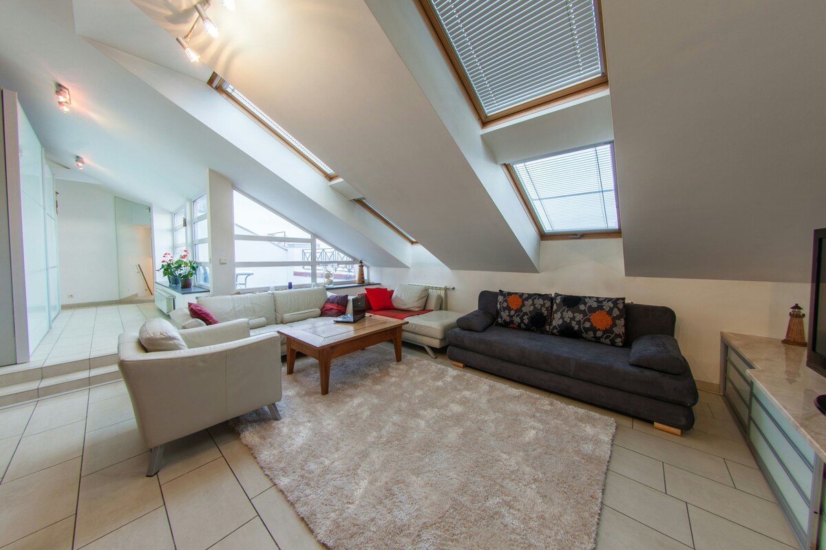 Viktigt: från och med denna dag får boendet inte planerade elavbrott. Detta kan komma att ändras i framtiden. Denna vindsvåning är en 55 kvm 1BR lägenhet på femte våningen i en lugn bostadsbyggnad. Bekvämligheter. - WiFi + LAN - 4K-TV - Luftkonditionering i varje rum. Kök. - Kaffebryggare: espressomaskin - Elektrisk vattenkokare. - Diskmaskin. - Mikrovågsugn. -Induktionsspis. - Ugn. - Kylskåp. - Kylskåp. Badrum. - Tvättmaskin + torktumlare - Vattenvärmare. - Handdukstork. - Strykjärn. - Hårtork. - Golvvärme.