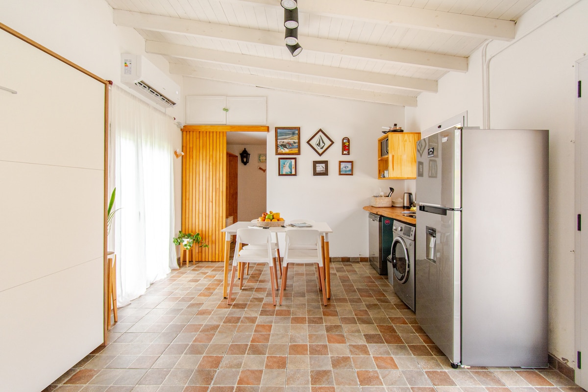 We designed our island, mate chucrut, so you can enjoy some perfect days. There’s a fully equipped kitchen, a kayak for exploring the creek, Starlink Wi-Fi for work or movie marathons, a barbecue area, and outdoor spaces with hammocks and lounge chairs. Bed linen, towels, drinking water, and cleaning and personal care products are included. Plus, a wood-burning stove keeps things cozy in winter.