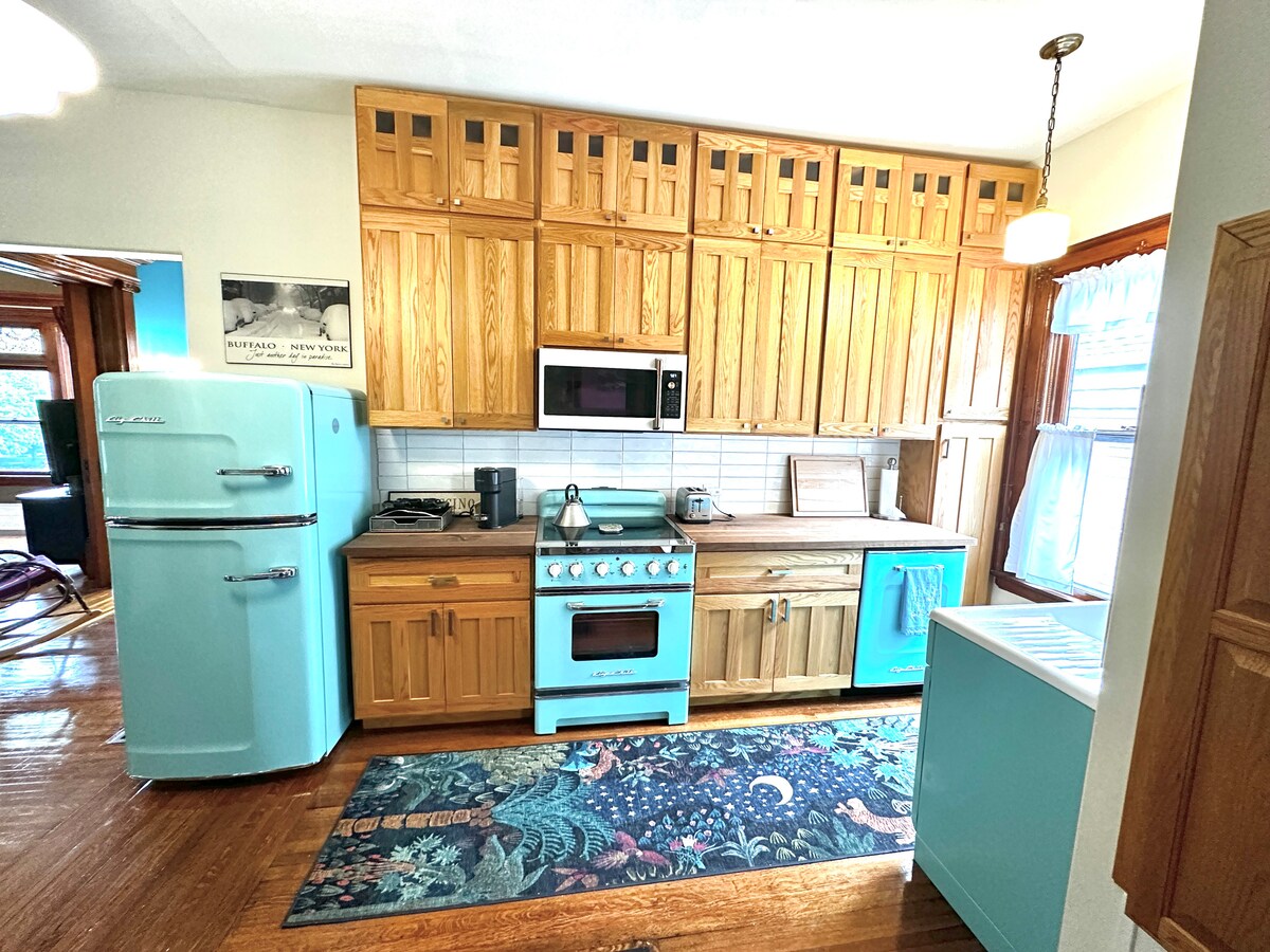 Njut av en elegant upplevelse på denna centralt belägna, nyrenoverade, 1875 Bungalow på en lugn enkelriktad gata. Detta boende är väl utrustat med alla bekvämligheter och exklusiva möbler för att göra din vistelse i Buffalo exceptionellt bekväm. Utanför hittar du en enorm helt inhägnad bakgård med en altan, en täckt veranda med en hammock och parkering utanför gatan. Vårt hem ligger bara en kort promenad till Allen St där du hittar massor av restauranger, nattliv, shopping och kaféer.