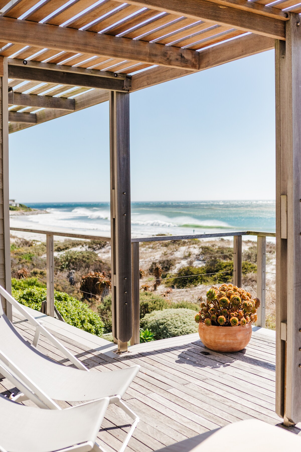 Upplev en av de mest orörda sträckorna av den södra halvöns kustlinje från vårt avslappnade hus. Övervåningen erbjuder spektakulär havsutsikt med ett stort öppet badrum. Nere är den perfekta miljön för middagar runt matbordet som leder till det öppna köket. De nedervåningens dubbelrum delar badrum och det främre sovrummet har vacker havsutsikt. Medan däcket på nedervåningen är perfekt för solnedgångar. Beläget 45 minuter från Kapstadens centrum.