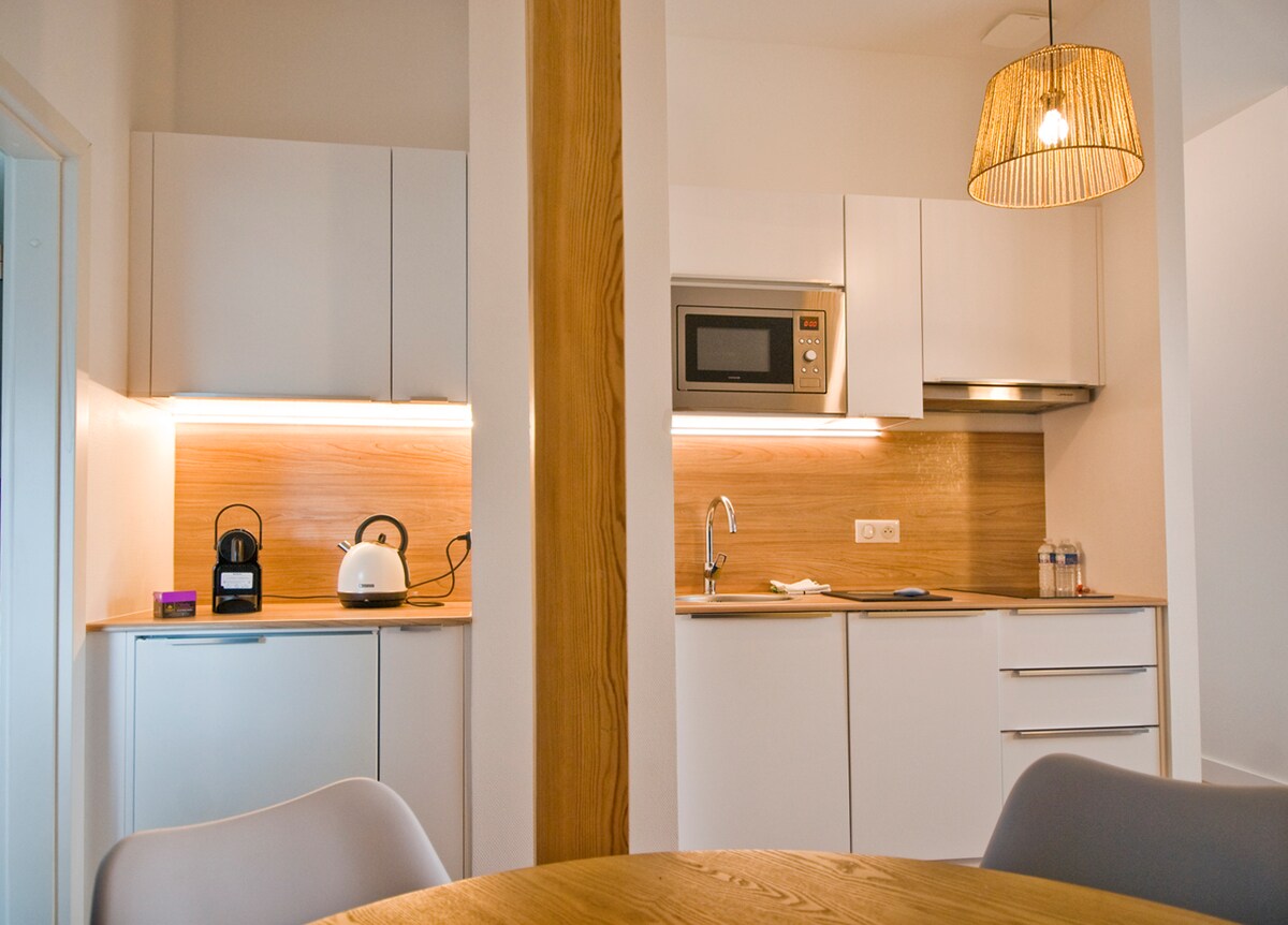 30 m2 stor studio med 1 säng 140x190, och bäddsoffa, kök, dusch, nära den berömda nöjesparken Europapark och den nya vattenparken Rulantica, unik i Europa!Perfekt för julmarknader, halvvägs mellan Strasbourg och Colmar Privat parkeringsplats med videoövervakning Fruktsaft, brioche, ett sortiment av hemmagjord sylt, Nespresso-kapslar och örtteer kommer att finnas tillg tillgängliga för din första frukost