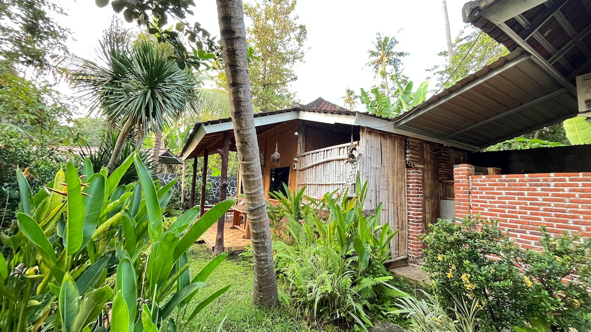 Bo i två mysiga ekologiska stugor på vår ekologiska gård i norra Bali. Omgivet av risfält, skog och vidöppen utsikt är det en fridfull plats att sakta ner och återförenas. Utrymmet rymmer upp till 4 vuxna, plus en bäddsoffa för 1–2 små barn. Njut av den stora trädgården, yoga shala, utekök och vårt lilla café. Tyst, naturligt, enkelt boende – perfekt för familjer, vänner eller en naturfokuserad flykt.