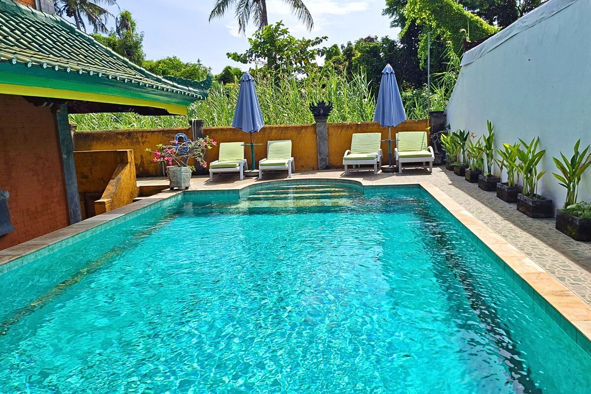 Välkommen till Villa Sedang! Rymlig, modern villa med frodig trädgård, oändlig pool med utsikt över havet. Gott om loungeutrymmen för att koppla av hela dagen lång. NKLUDERADE tjänster: *Kock för att göra 3 måltider dag (du betalar för ingredienser) *Dagligen städning av huset * Utflyktsplanering Valfria tjänster: *Bil med engelsktalande förare *Massage- och spabehandlingar *Sightseeing- och turalternativ Vi rekommenderar gärna de bästa platserna att besöka baserat på vår erfarenhet och ordna allt för dig.