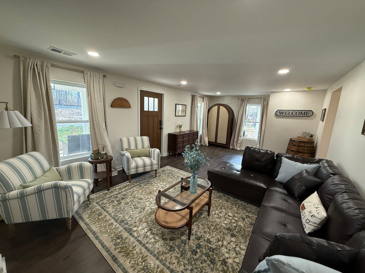 Dra dig tillbaka till din fridfulla tillflyktsort efter en dags utforskning av allt som Bardstown och KY har att erbjuda! Koppla av vid eldstaden och streama en film på 75-tums-TV, laga en fullständig måltid i det välfyllda köket, skapa en unik cocktail med alla verktyg du kan önska dig, andas frisk luft på den avskärmade verandan som gränsar till grönområdet, utmana vänner till poker i spelrummet, grilla middag på vår kolgrill eller rosta korvar och marshmallows på eldstadsområdet. Det måste vara här.