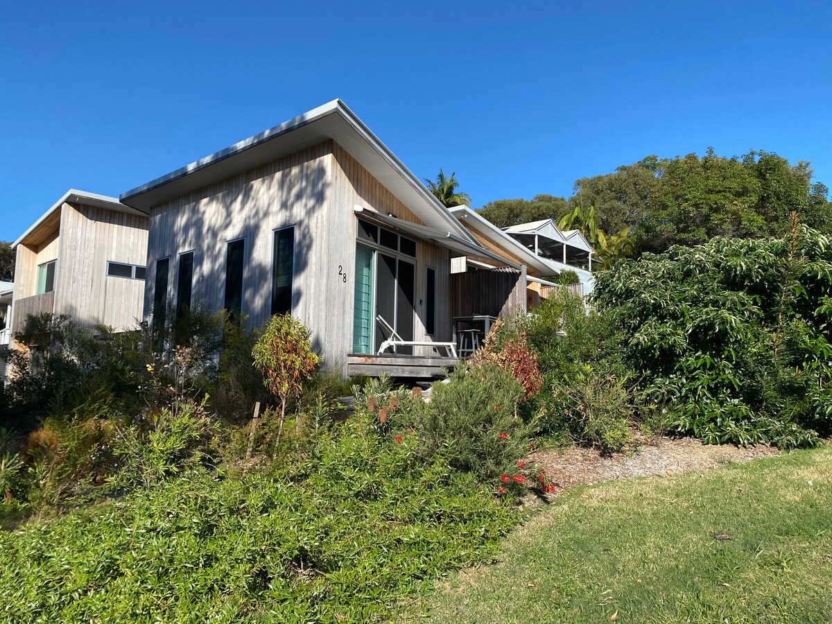 Ingen TV, BYO Wifi. 20' grundläggande container. Enkel utdragbar säng. Omgiven av inhemsk bush trädgård, på vackra Land for Wildlife. Den är liten. Den är opretentiös. Det finns en takfläkt när brisen är ledig. Njut av duschdäcket. Köket har handfat, kylskåp, mikrovågsugn, vattenkokare, brödrost och kaffekapselgrej. Du behöver en bil: Vi är 7 minuter till butikerna, 13 minuter till floden, 15 minuter till surfingen, 25 min till inlandet vattenfall men bara 0 minuter till lugn. Var värd på tomten.