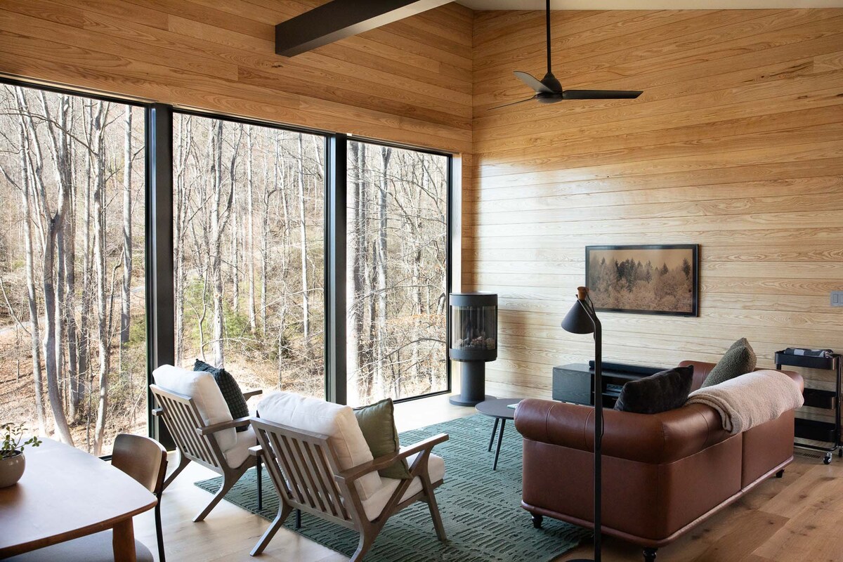 Rainbow Vista ligger på två skogiga tunnland och är vår nybyggda, moderna tillflyktsort från mitten av århundradet med utsikt över Reeves Cove och Pisgah National Forest. Eftersom vi endast kan ta emot en bokning per vecka prioriterar vi bokningar för minst 4 dagar. Om du vill boka 10 dagar eller mer kan vi kanske justera begränsningarna för inchecknings-/utcheckningsdagar. Fråga bara!
