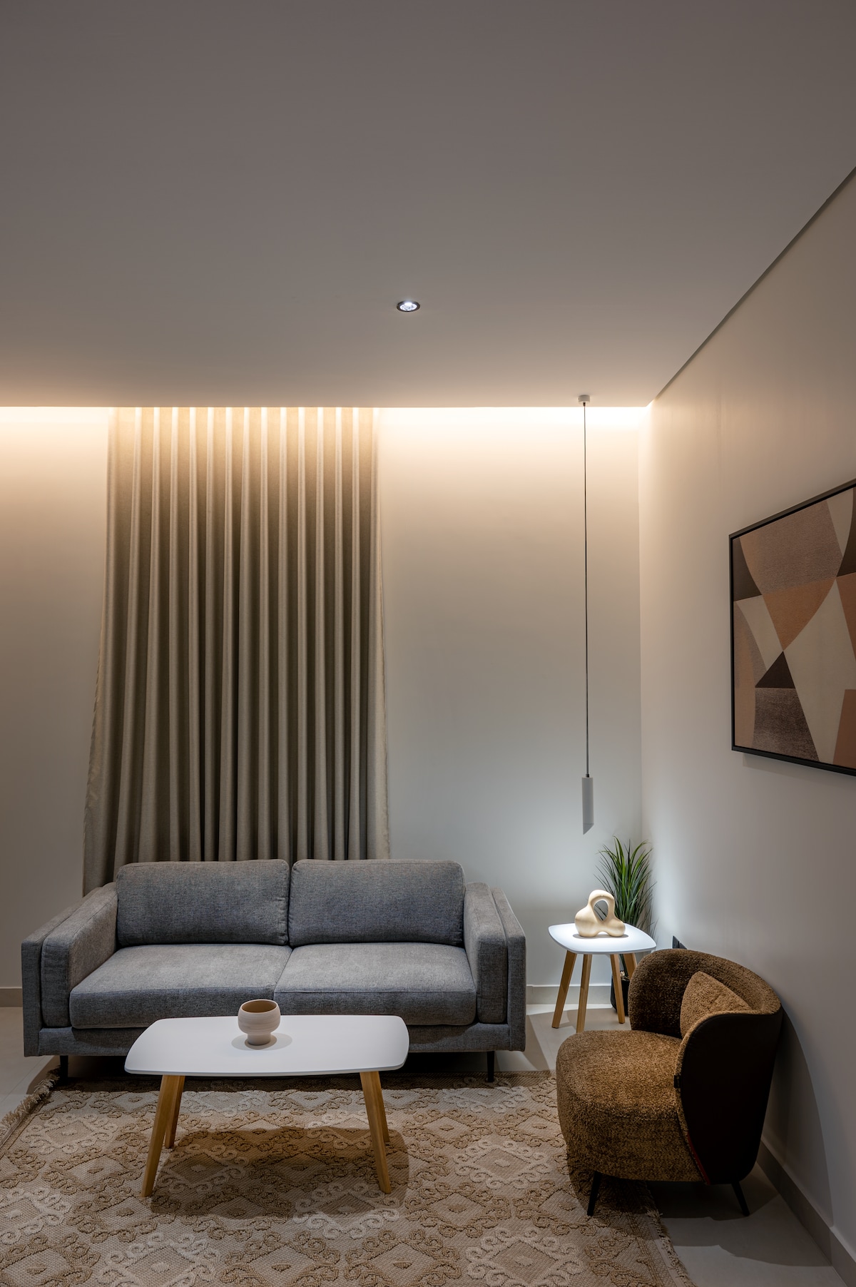 Njut av en exklusiv boendeupplevelse som kombinerar komfort och lyx i en tvårumslägenhet och en lounge, noggrant utformad för att rymma familjer eller vänner och ge dig en känsla av avskildhet och lugn. rymliga utrymmen Modern design wi-fi smart TV och ett distinkt läge norr om posten ligger nära alla tjänster, restauranger och kaféer och det finns ett distinkt kafé under lägenheterna Lägenheten har två rundor av vatten för din bekvämlighet och användarvänlighet, samt en signatur kaffehörna med en vattenkokare och V60 redskap för kompetenta kaffeälskare.
