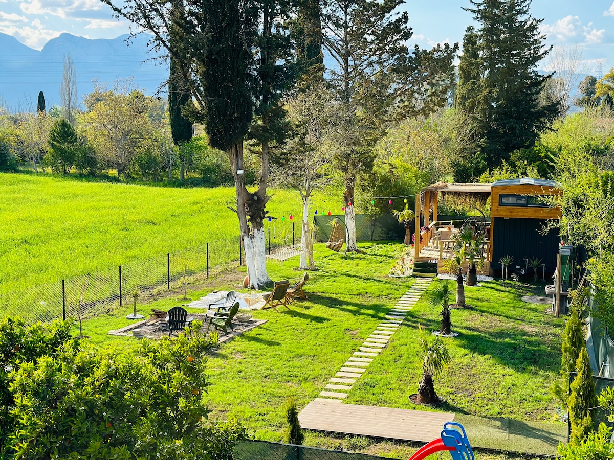 Med det tunna huset vi gjort av 2+1 privata cederträd och 600 m 2 fristående mark, erbjuder vi dig en unik utsikt och fridfull. Vi är centralt belägna bara 5 min med bil till Konyaaltı strand. Vi har skapat en fristående och naturlig plats för dig, våra gäster.
