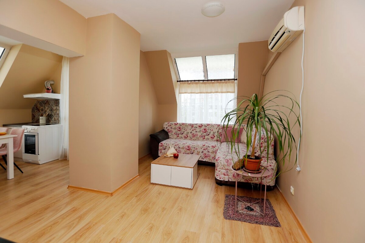 🏖 Välkommen till Your Sarafovo Seaside Studio Retreat! 🌊 Njut av den perfekta kustflykten i denna mysiga studio med en privat balkong, som ligger bara några minuter från stranden och bara en kort bilresa från Burgas centrum. Studion är en del av ett modernt komplex med 4 pooler — 2 stora och 2 för barn, perfekt för familjer, par eller ensamresenärer.