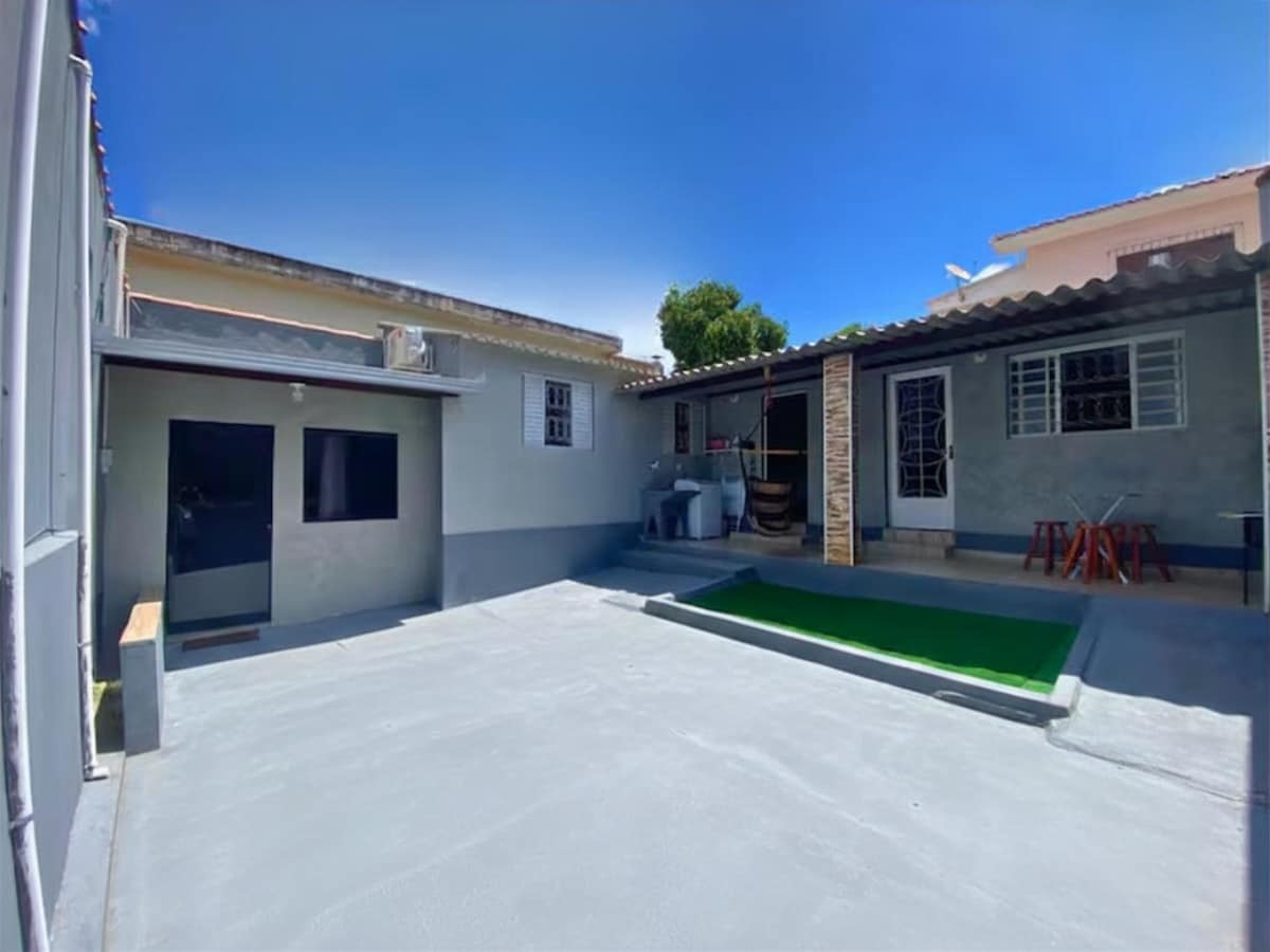 Sinta-se em casa em um espaço planejado para o seu conforto. Nossa casa oferece 3 quartos (sendo 1 suítes). A casa possui ar- condicionado para o seu descanso. A cozinha é totalmente equipada com fogão, geladeira ,microondas e utensílios e ar- condicionado , integrada a uma sala com sofá e mesa de jantar. Aproveite nosso Wi-Fi de alta velocidade e a conveniência de 2 vagas de garagem exclusivas."