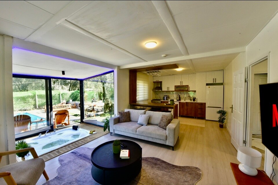 Villan är perfekt för familjer och grupper av vänner och ligger i Öykütepe, 2 km från Tirilye, en före detta fiskeby. Detta hus etablerar en stark koppling mellan modern arkitektur och natur och har en pool gömd i skogen och panoramautsikt över bergen, dalen och havet. Den kan användas som två separata bostäder med en nedrullningsbar mezzanindörr. Det finns en grönsaksträdgård och fruktträd i trädgården. Det är 90 minuter till Istanbul och 25 minuter till Bursa.