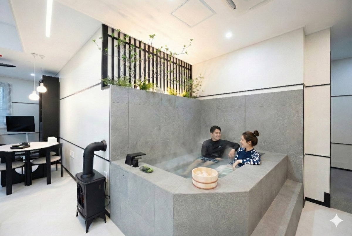 [Haru Suite Gwangalli: En privat poolvilla i Koreas vackraste strandstad] Haru Suite Gwangalli ligger i Busans berömda Gwangalli Beach-område — känt för sin livliga havsutsikt, rika lokala matscen och bekväma reseinfrastruktur — och erbjuder en privat och säker tillflyktsort, perfekt för familjer med barn eller grupper av vänner. Njut av oförglömliga stunder i din egen privata jacuzzi med utsikt mot den ikoniska Gwangandaegyo-bron.