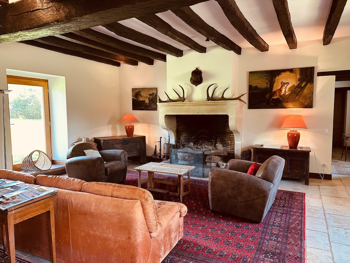 Vill du göra din vistelse oförglömlig och autentisk? Du har kommit till rätt ställe. En riktig fridfull fristad från 1600-talet mitt i en anlagd egendom på 4 hektar på landsbygden med en magnifik damm. Bucolic platser kommer att förföra dig med sin lugn och landskap. Den rymliga interiören garanterar avskildhet för alla! Luftkonditionering på nedervåningen. Närliggande elbilsterminal. Kulturella platser och utflykter kommer att erbjudas på Neuvy Saint Sepulchre Tourist Office.