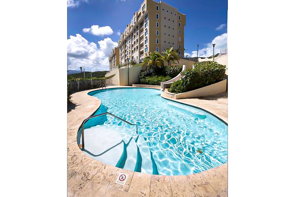 3 bdrm lyxig lägenhet, med fantastisk havs- och marinutsikt. Inredd med en king, en queen och 2 våningssängar, luftkonditionering och TV i alla rum. Fullt utrustat kök med många bekvämligheter. Perfekt för familjer eller par som vill komma bort! 3 pooler, gym, basket- och tennisbanor på plats. Strandhanddukar, stolar och kylbox tillhandahålls. Gå till marinan, restauranger och minuters bilväg till 7 Seas beach. Cirka 20 minuters bilresa till El Yunque och färjan till Vieques & Culebra. Fastighetsförvaltare tvåspråkig. Flygplatshämtning tillgänglig -addtl.